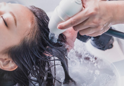 高濃度水素発生シャワー「DETOSPA」を使用。高濃度の分子状水素が髪や頭皮のダメージを進行させる活性酸素を洗い流し、頭皮にハリと潤いを与え、健康な状態にリセット。
