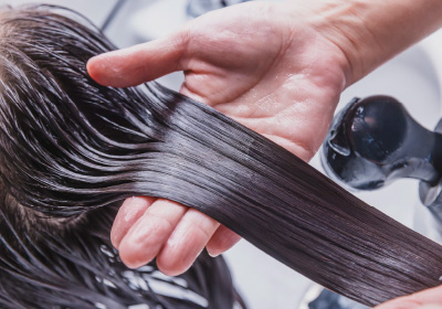 髪質に合わせたトリートメントを選定。手触りを良くし艶やかな髪へ導く。